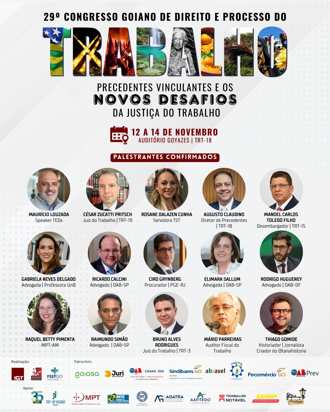 O evento será realizado entre os dias 12 e 14 de novembro de 2025, no Auditório dos Goyazes do Tribunal Regional do Trabalho da 18ª Região (GO), em Goiânia.