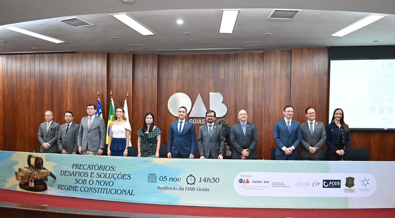 A Ordem dos Advogados do Brasil – Seção Goiás (OAB-GO), por meio da Comissão de Precatórios e Credores Públicos (CPCP), em parceria com a Escola Superior de Advocacia de Goiás (ESA-GO) e a Caixa de Assistência dos Advogados de Goiás (Casag), promoveu, nesta tarde de quarta-feira (5), no auditório da Seccional, o evento “Precatórios: Desafios e Soluções sob o Novo Regime Constitucional”.