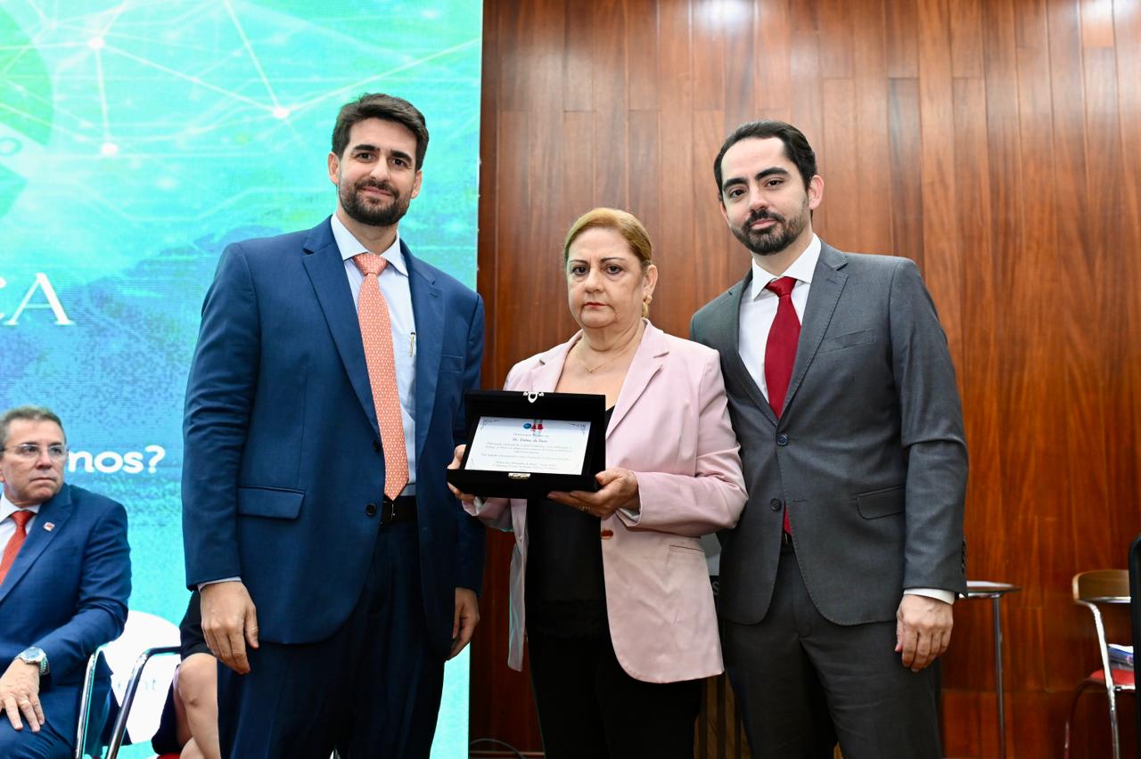 Um dos momentos marcantes da abertura foi a homenagem póstuma a Dalmy de Faria, figura histórica do Direito Eleitoral goiano. A esposa, Valdete Clariano Costa Faria, e o filho, Danilo Clariano de Faria, foram convidados ao palco para receber o reconhecimento pelo legado de dedicação e ética profissional deixado pelo jurista.