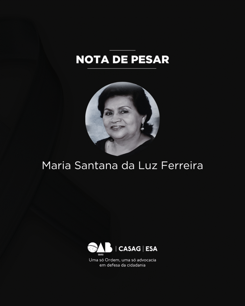 A Ordem dos Advogados do Brasil – Seção Goiás (OAB-GO) e a Subseção de Aparecida de Goiânia lamentam, com profundo pesar, o falecimento da Sra. Maria Santana da Luz Ferreira, mãe do diretor-tesoureiro da subseção, André Juliano Da Luz Ferreira, ocorrido na terça-feira, dia 20 de janeiro.