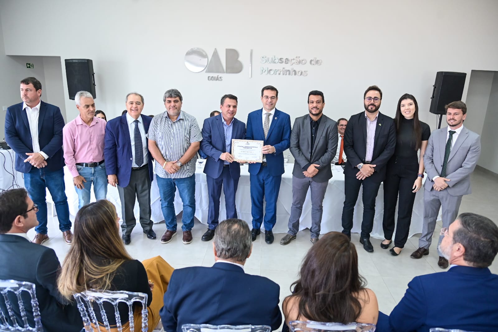 Na sequência, por proposição da Câmara Municipal de Morrinhos, foi entregue oficialmente o Título de Cidadão Honorífico Morrinhense ao presidente da OAB-GO, Rafael Lara, em reconhecimento à sua contribuição institucional ao município. A autoria da honraria é do vereador Wellington Dias Fernandes.