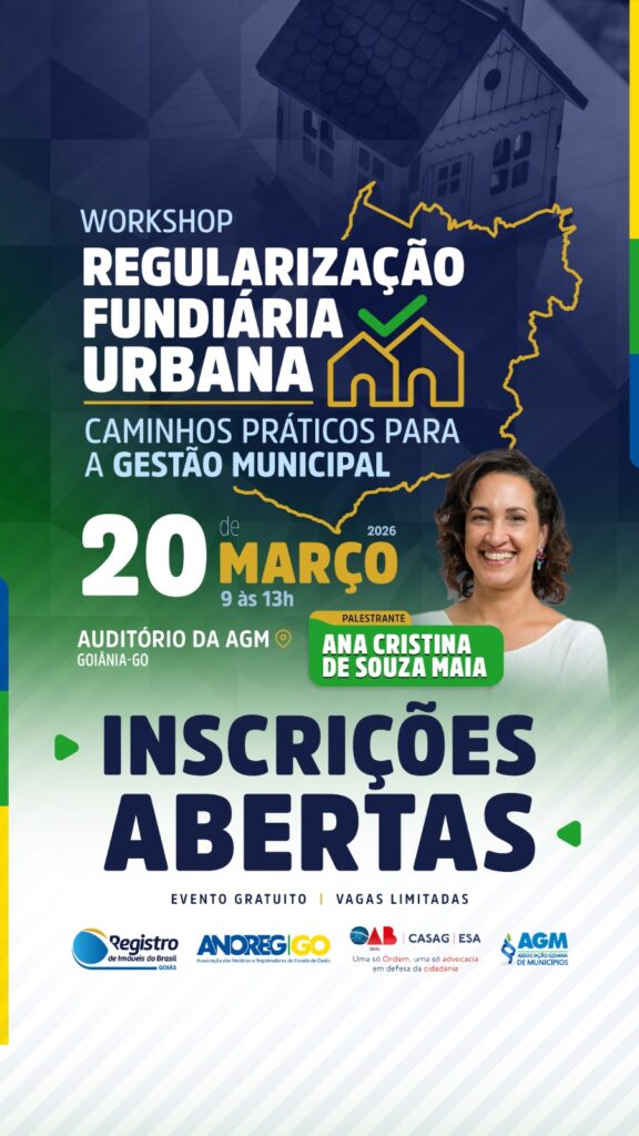 A Ordem dos Advogados do Brasil – Seção Goiás (OAB-GO), por meio da Comissão Regularização Fundiária (CERF), informa que estão abertas as inscrições para o workshop “Regularização Fundiária Urbana: Caminhos Práticos para a Gestão Municipal”, que será realizado no dia 20 de março, em Goiânia.