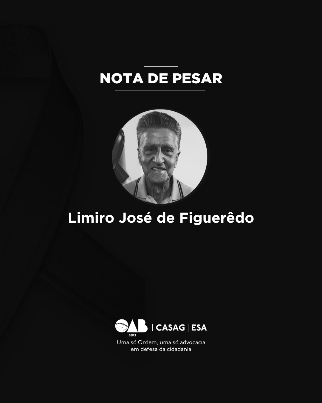 A Ordem dos Advogados do Brasil – Seção Goiás (OAB-GO) lamenta, com profundo pesar, o falecimento de Limiro José de Figueiredo, pai da advogada Néli Carita Máximo Figueiredo, procuradora-geral do Município de Trindade e ex-vice-presidente da Caixa de Assistência dos Advogados de Goiás (Casag), ocorrido neste sábado, 1º de novembro.