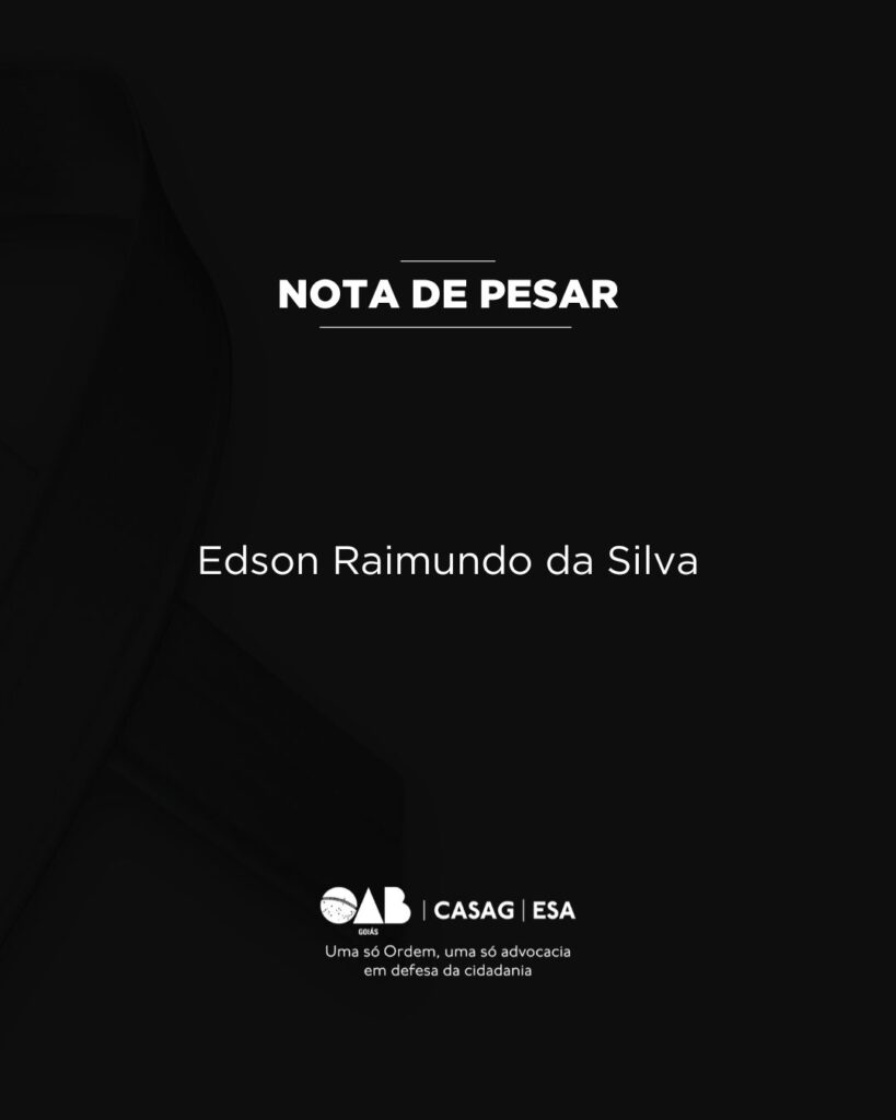 A Ordem dos Advogados do Brasil – Seção Goiás (OAB-GO) manifesta profundo pesar pelo falecimento de Edson Raimundo da Silva, pai do presidente da subseção de Jussara, André Luis da Silva, ocorrido neste domingo, 12 de outubro, em Goiânia.