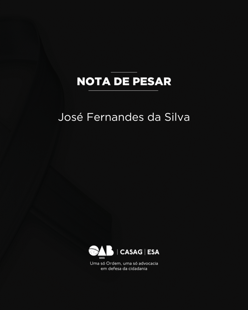 A Ordem dos Advogados do Brasil – Seção Goiás (OAB-GO) manifesta profundo pesar pelo falecimento de José Fernandes da Silva, ocorrido no último sábado (11).