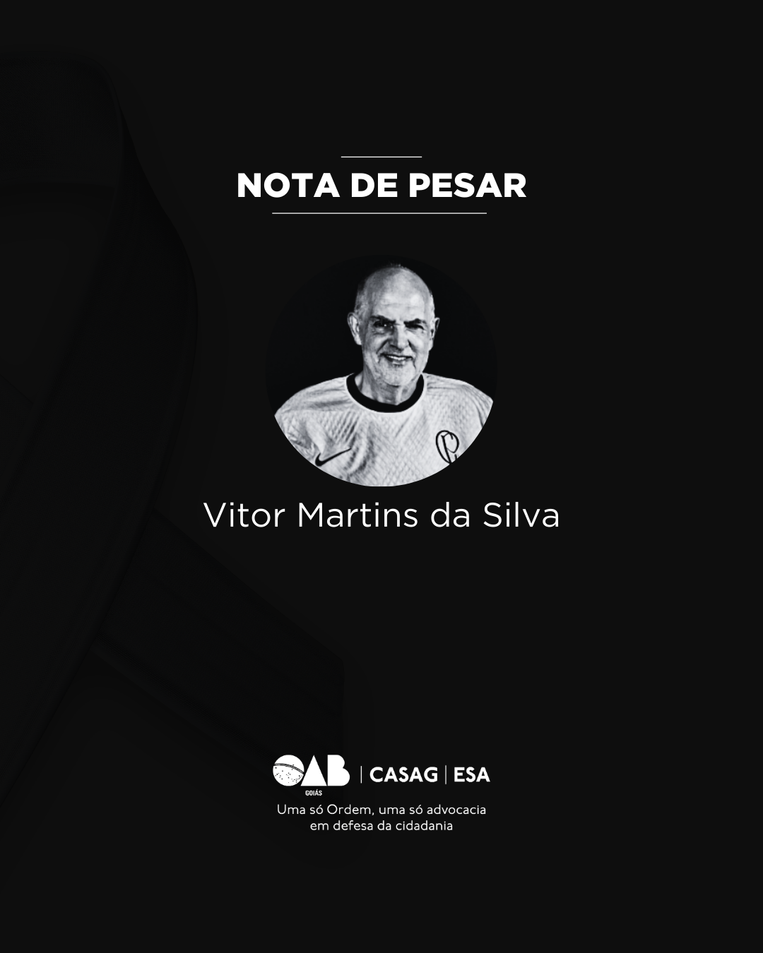 Neste momento de dor, a Seccional e a Subseção se solidarizam com familiares e amigos, desejando que encontrem conforto nas memórias e no exemplo deixado por Vitor Martins da Silva. Que Deus, em sua infinita bondade, o receba de braços abertos.