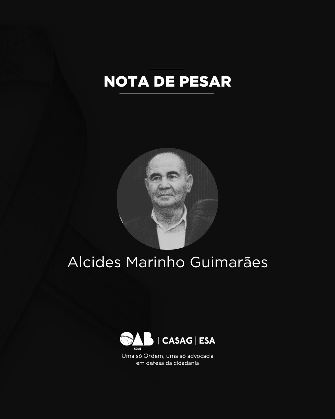 A Ordem dos Advogados do Brasil – Seção Goiás (OAB-GO) e a Subseção de Porangatu lamentam, com profundo pesar, o falecimento do advogado Alcides Marinho Guimarães, ocorrido nesta sexta-feira, dia 6 de fevereiro.