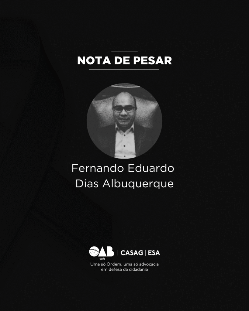 A Ordem dos Advogados do Brasil – Seção Goiás (OAB-GO) e a Subseção de Porangatu lamentam o falecimento do advogado Fernando Eduardo Dias Albuquerque, ocorrido na última terça-feira, dia 3 de fevereiro.