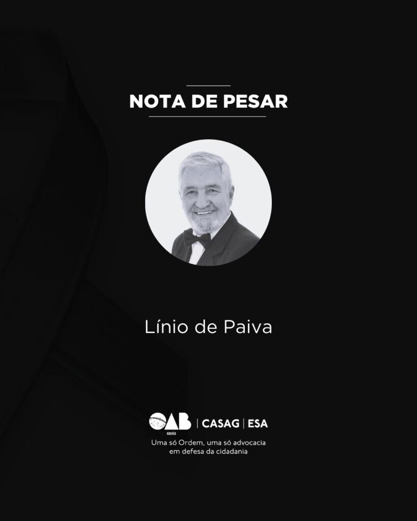 A Ordem dos Advogados do Brasil – Seção Goiás (OAB-GO) manifesta profundo pesar pelo falecimento do advogado, ex-parlamentar e conselheiro do Tribunal de Contas dos Municípios de Goiás (TCM-GO), Línio de Paiva, ocorrido na manhã desta terça-feira (10), em Goiânia, aos 89 anos.