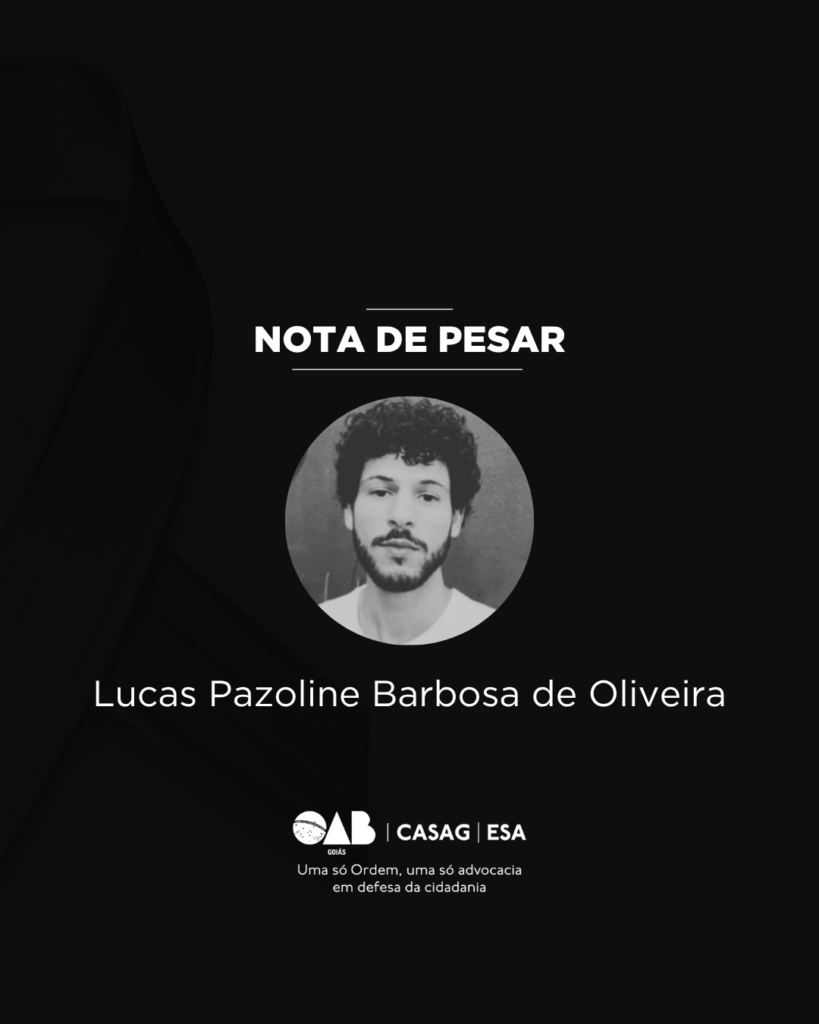 A Ordem dos Advogados do Brasil – Seção Goiás (OAB-GO) lamenta, com profundo pesar, o falecimento do advogado Lucas Pazoline Barbosa de Oliveira, ocorrido na última quinta-feira, dia 23 de abril.