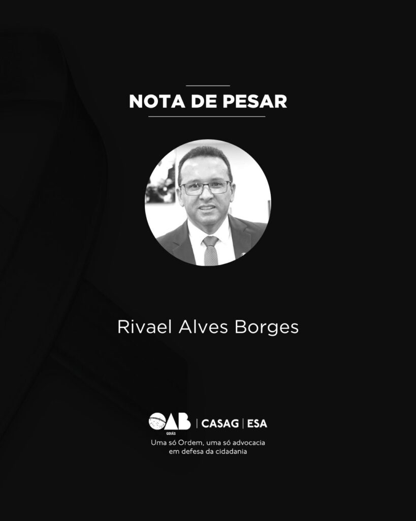 É com profundo pesar que a Ordem dos Advogados do Brasil – Seção Goiás (OAB-GO), por meio da subseção de Planaltina de Goiás, comunica o falecimento do advogado Rivael Alves Borges (OAB-GO nº 31.978), ocorrido nesta sexta-feira (26).