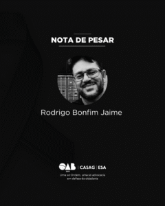 Neste momento de dor, a Seccional se solidariza com os familiares e amigos, desejando que encontrem conforto nas lembranças e no legado deixado por Rodrigo Bonfim Jaime. Que Deus, em sua infinita bondade, o receba de braços abertos.