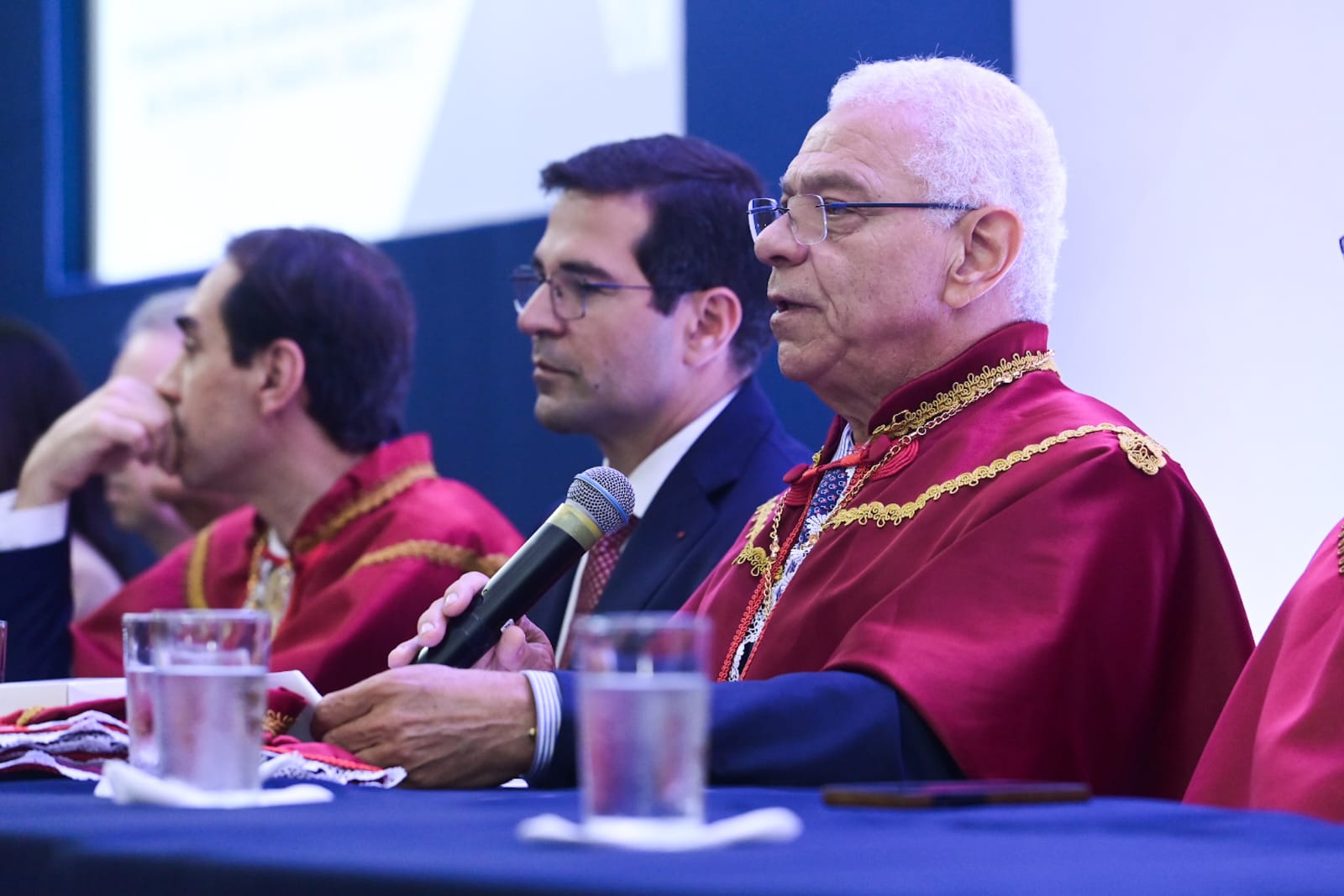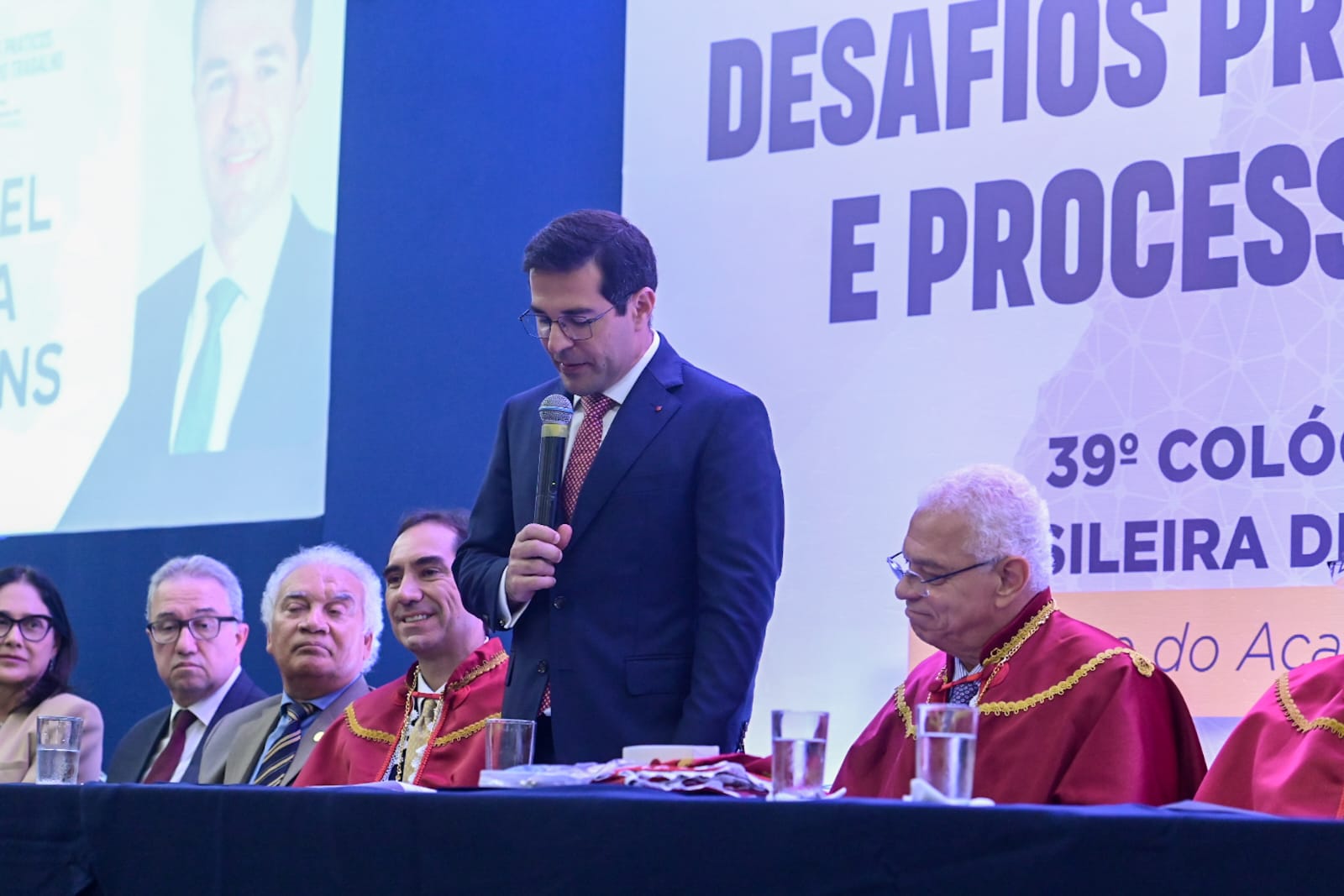 Durante a solenidade, a mesa de honra foi composta por autoridades do meio jurídico, acadêmico e institucional, entre elas o presidente da ABDT, Alexandre Belmonte; os juízes do Trabalho e acadêmicos da ABDT, Sérgio Teixeira e Platon Teixeira Neto; o desembargador do Tribunal Regional do Trabalho da 18ª Região (TRT18), Elvécio Moura; a procuradora-chefe do Ministério Público de Goiás (MP-GO), Milena Costa; o procurador-geral Rafael Arruda, representando o Governo de Goiás; a desembargadora do TRT-18, Wanda Lúcia Ramos; a deputada federal Marussa Boldrin; o juiz do Trabalho Cleidimar Almeida; o desembargador do Tribunal de Justiça de Goiás (TJGO), Augusto Ventura; e a vice-prefeita de Goiânia, Cláudia Vieira.