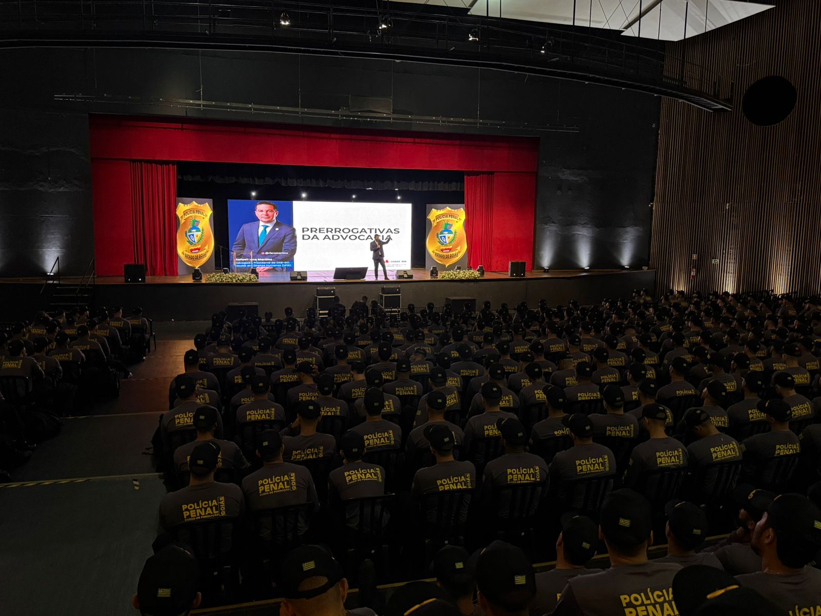 A palestra integrou a programação de capacitação dos novos integrantes da Polícia Penal, reunindo autoridades, instrutores e servidores da corporação, além de dezenas de alunos que participaram ativamente do encontro. O momento foi marcado pela troca de experiências e pelo reconhecimento da importância do respeito mútuo entre advocacia e segurança pública para a efetividade das garantias legais.