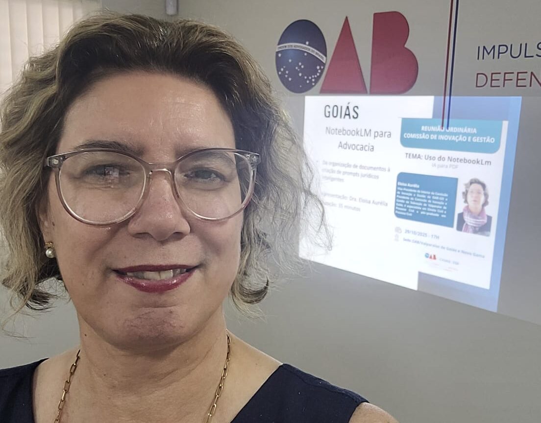A palestra foi ministrada por Eloisa Aurélia, vice-presidente do Interior da Comissão de Inovação e Gestão da OAB-GO e presidente da Comissão de Inovação e Gestão da Subseção de Valparaíso de Goiás. Especialista em Direito Civil e Processo Civil e pós-graduada em Processo Civil, Eloisa apresentou o NotebookLM, ferramenta de IA desenvolvida pela Google, destacando suas aplicações práticas na advocacia contemporânea.